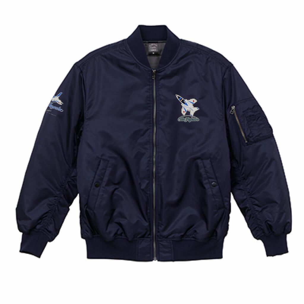 戦闘機をカッコ可愛く擬人化したイラストがプリントされたMA-1タイプのフライトジャケット。