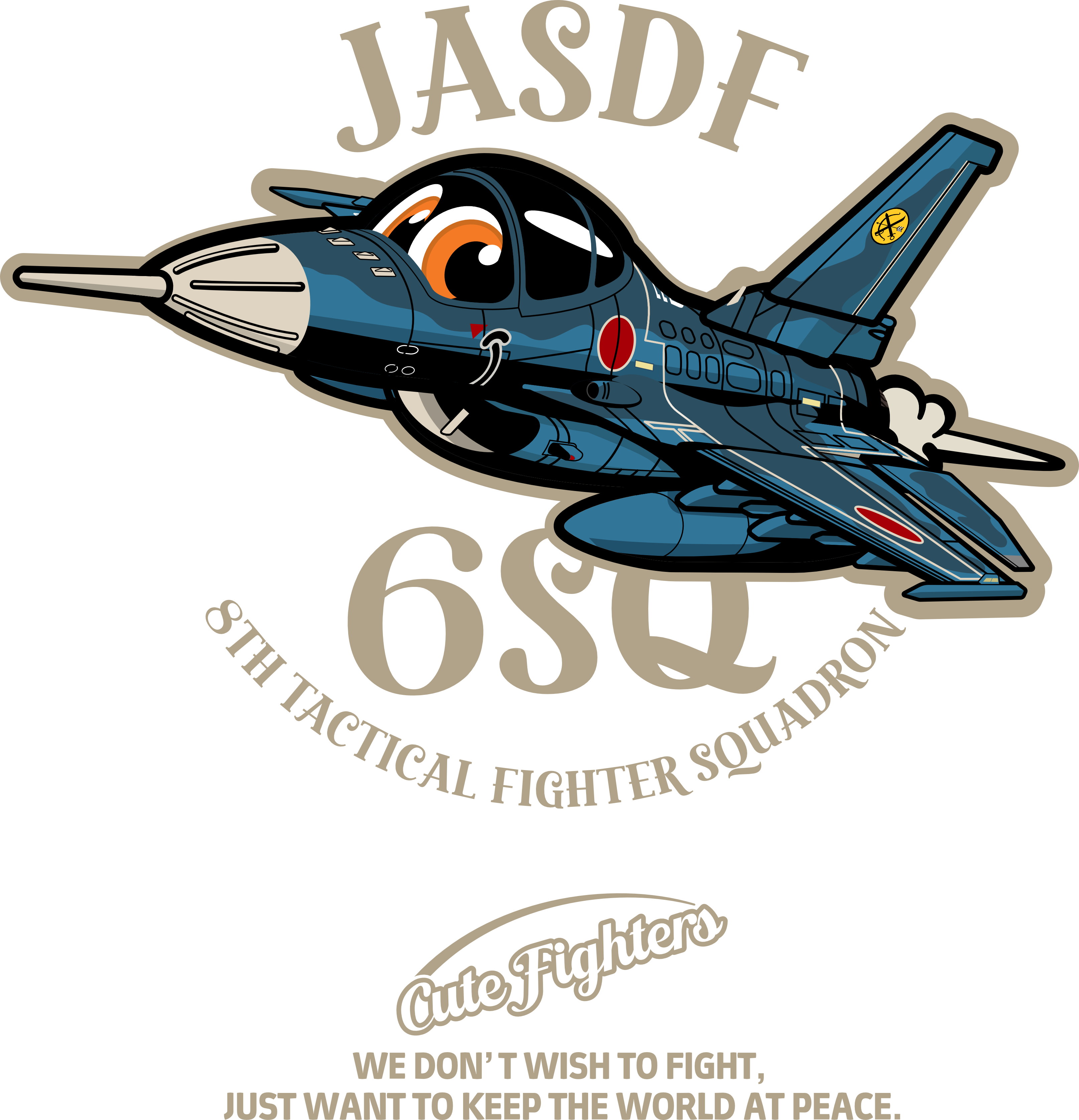 戦闘機をカッコ可愛く擬人化したイラストがプリントされたMA-1タイプのフライトジャケット。