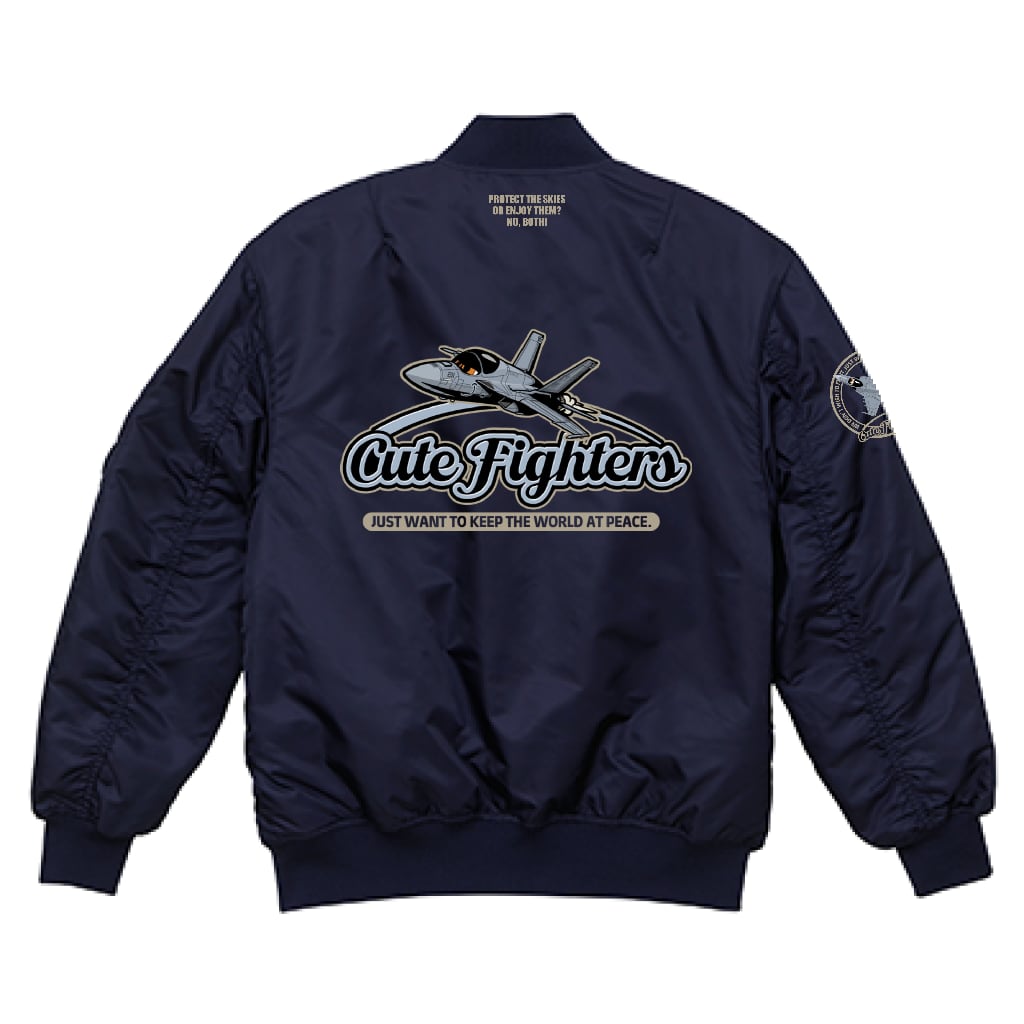 戦闘機をカッコ可愛く擬人化したイラストがプリントされたMA-1タイプのフライトジャケット。
