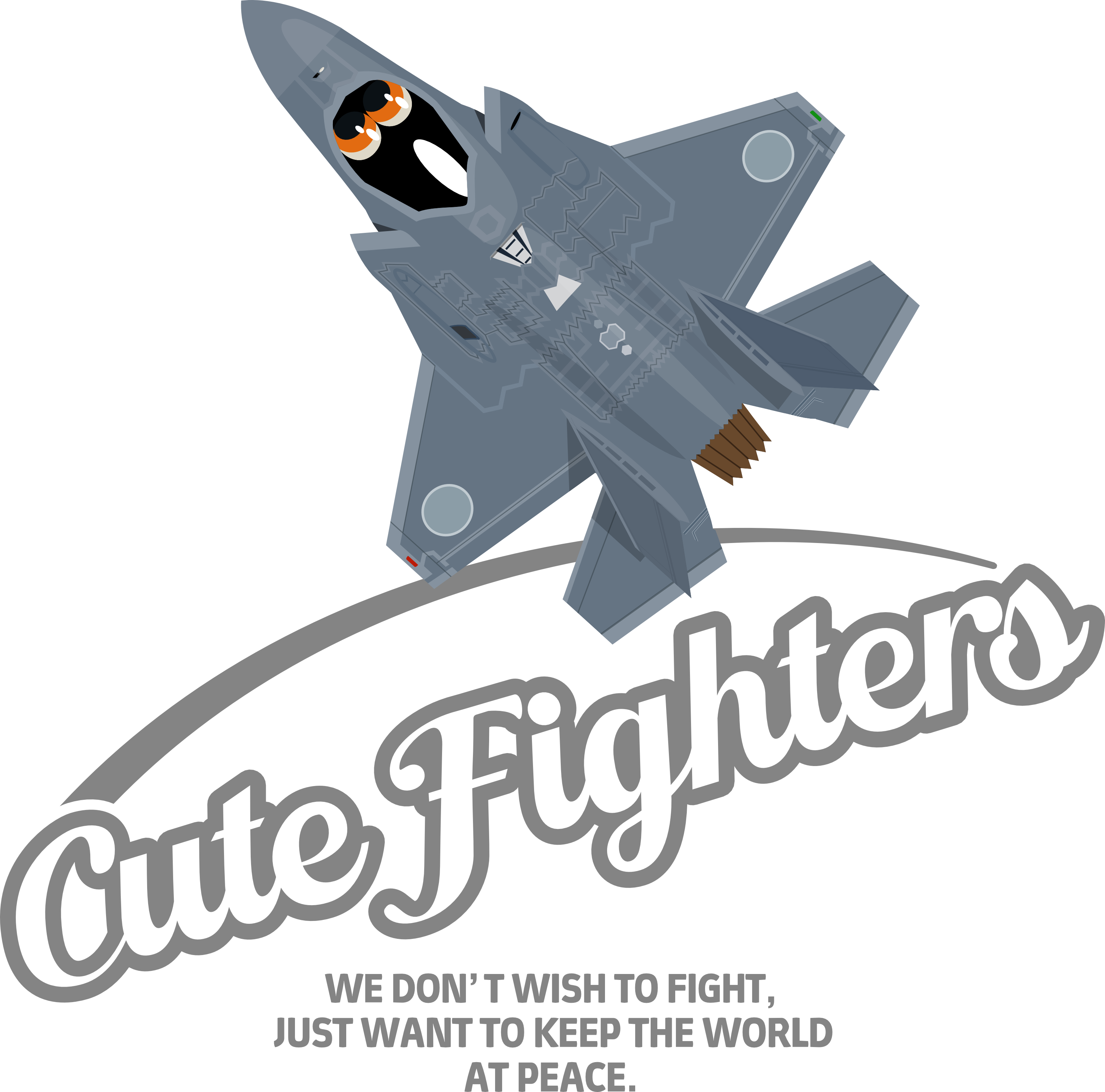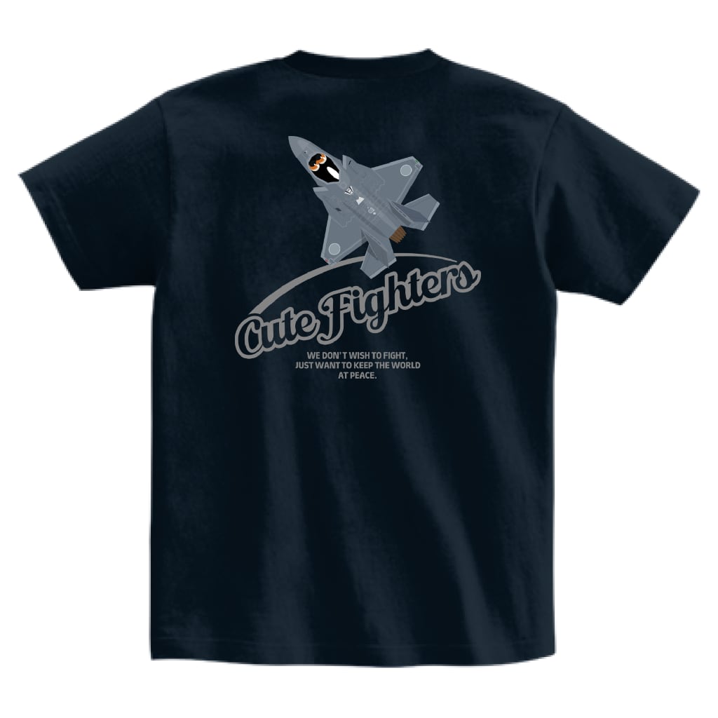 戦闘機をカッコ可愛く擬人化したイラストがプリントされたヘビーウェイトTシャツ。