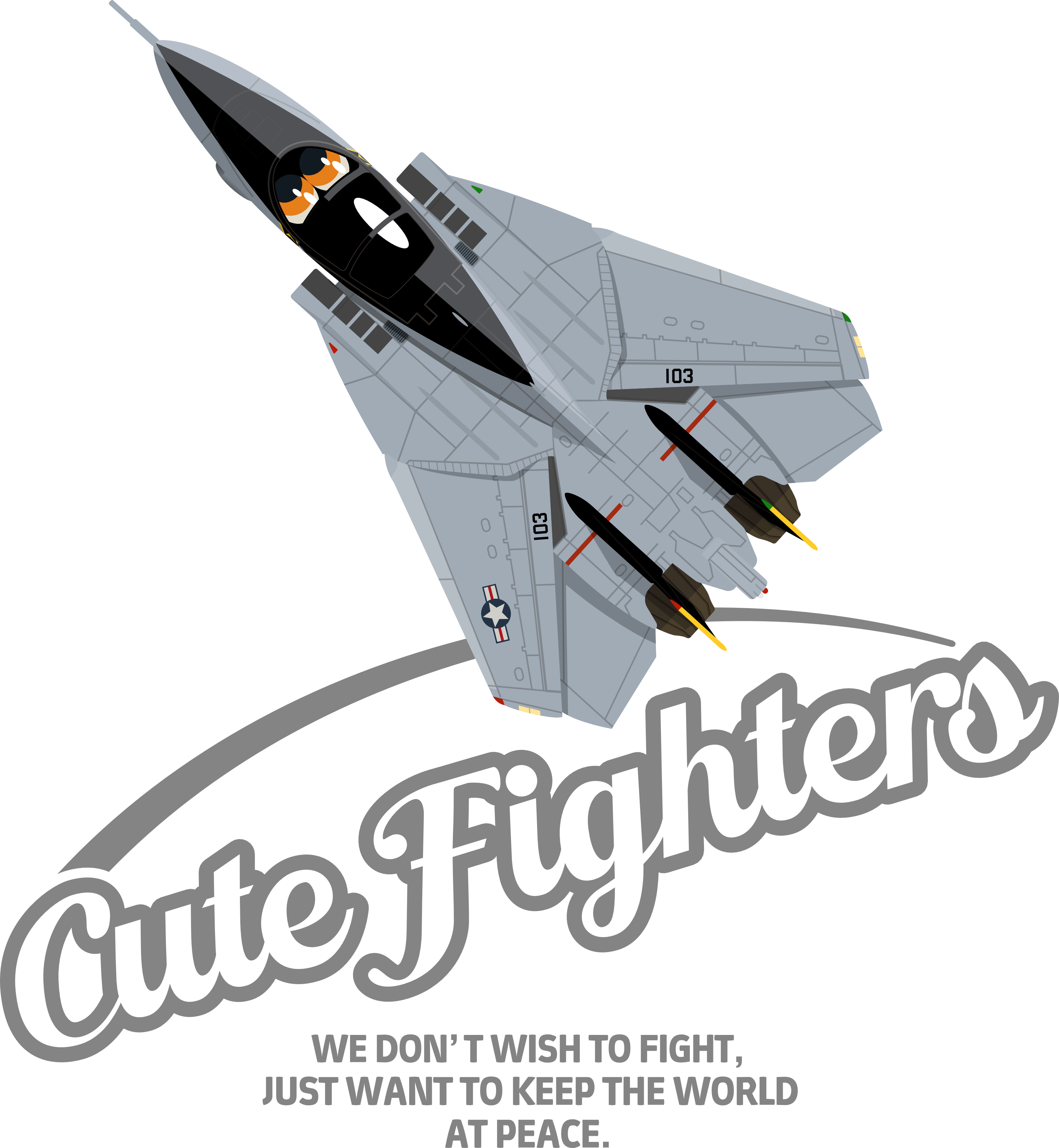 戦闘機をカッコ可愛く擬人化したイラストがプリントされたヘビーウェイトTシャツ。